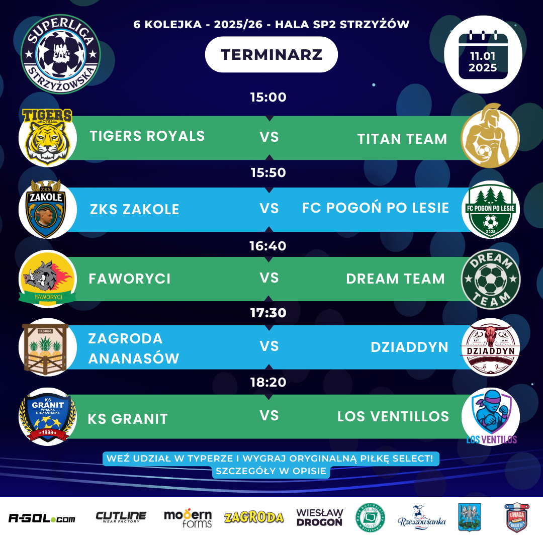🥅Grają z nami: Cutline Wear FactoryModern Forms PolskaGmina StrzyżówBank Spółdzielczy w Strzyżowie Zagroda RzeszowiankaR-GOL.com Wiesław Drogoń Uwaga Bagiety Strzyżów Frysztak